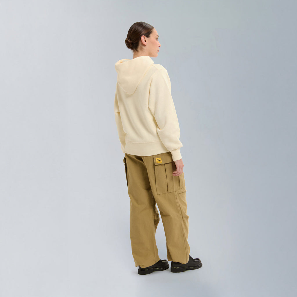Inspired by the U.S. Army’s M-65 field jacket, these cargo pants are a modern take on the M-51 series, which was updated in 1965. This version has been reinterpreted using a heavyweight cotton satin fabric, offering a sturdy feel and a refined military look.