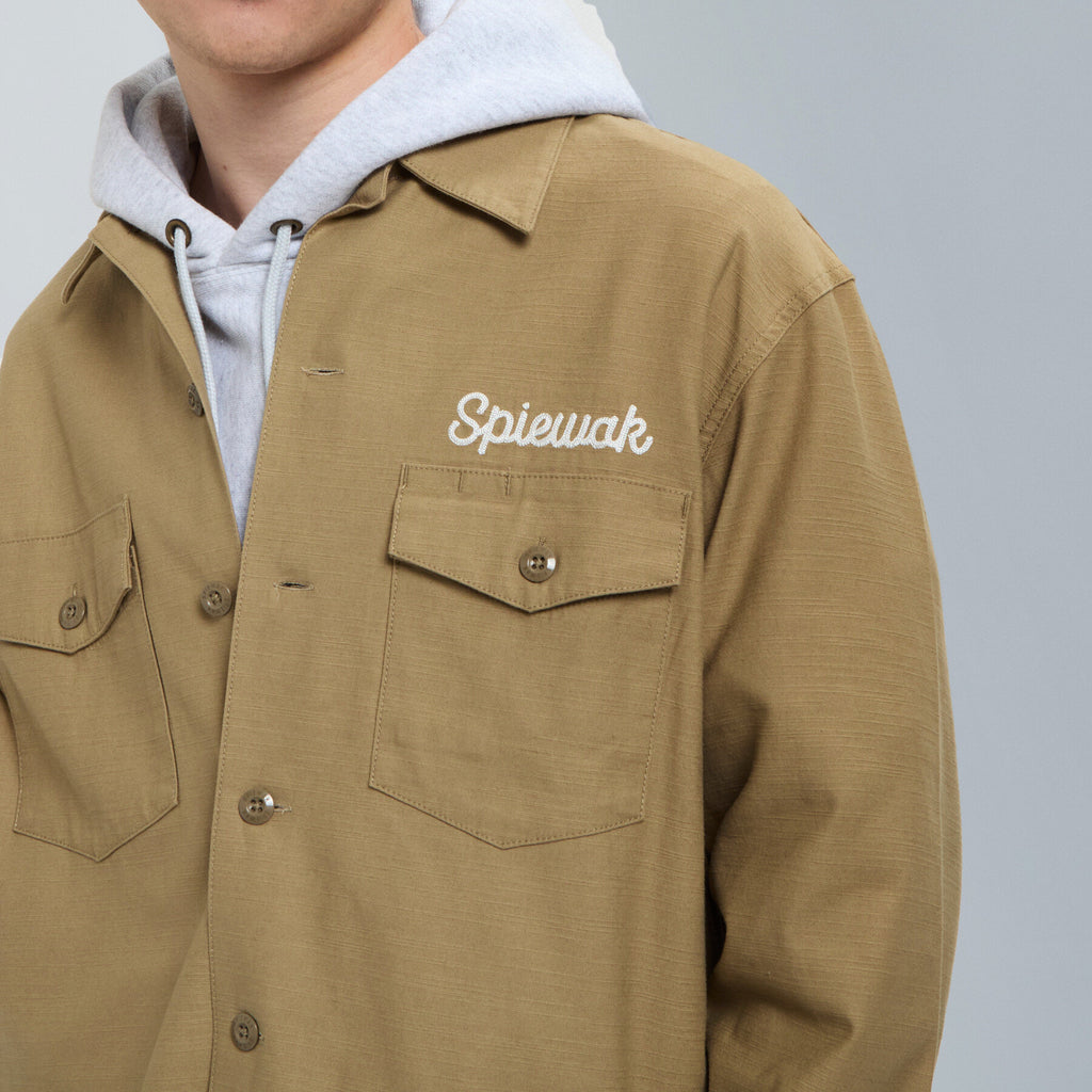 Inspired by the classic 1960s U.S. Army utility shirt, this piece is reimagined with a relaxed, oversized silhouette for a modern fit. Detailed embroidery and vintage-style accents add character, giving the shirt an authentic military feel with a contemporary twist.
